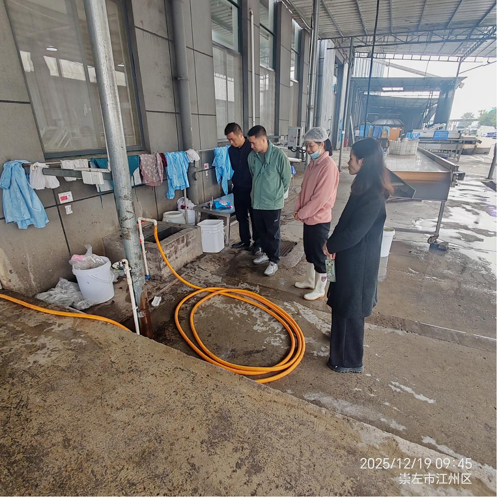 近期,崇左市高新區(qū)臺灣產業(yè)園片區(qū)污水匯聚集水井因部分企業(yè)生產的垃圾進入,導致井內抽污的污水泵進水口堵塞、頻繁跳閘、污水泵燒毀。為保障節(jié)假日期間集水井正常運行、企業(yè)排污順暢,嚴防污水泄漏污染環(huán)境,2025年12月19日,廣西中泰左江水務有限公司組建黨員干部牽頭的排污指導組,深入源頭企業(yè)開展規(guī)范排污指導工作。指